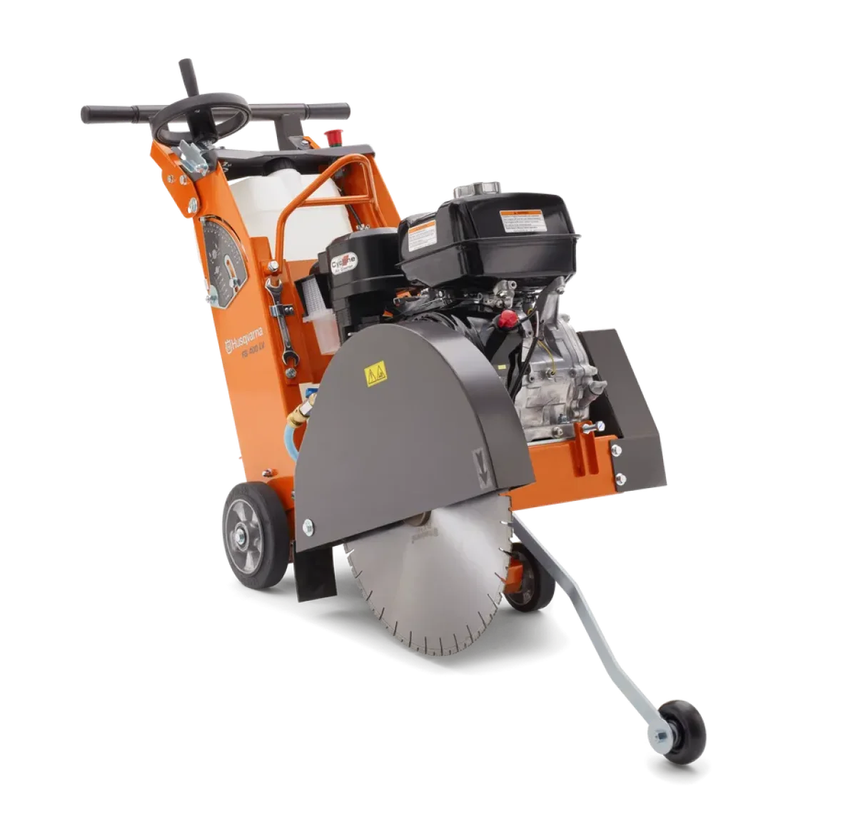 Система кріплення двигуна та вала леза мінімізує вібрацію, підвищуючи комфорт оператора та ефективність різання. Індикатор глибини легко регулюється для різних діаметрів леза, забезпечуючи точність при роботі. Великий інтегрований резервуар для води оснащений швидким з’єднанням водяного шланга з кожухом леза, що не потребує інструментів для демонтажу. Висувний маховик можна скласти під час руху пили, щоб уникнути пошкоджень, що додатково підвищує зручність використання.